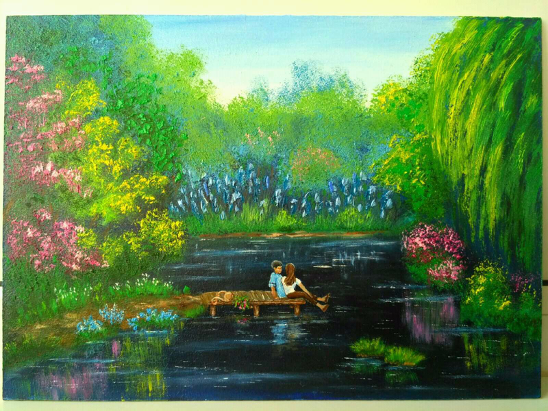 Картина маслом интерьерная живопись пейзаж цветы река подарок на IZI.ua (7463505)